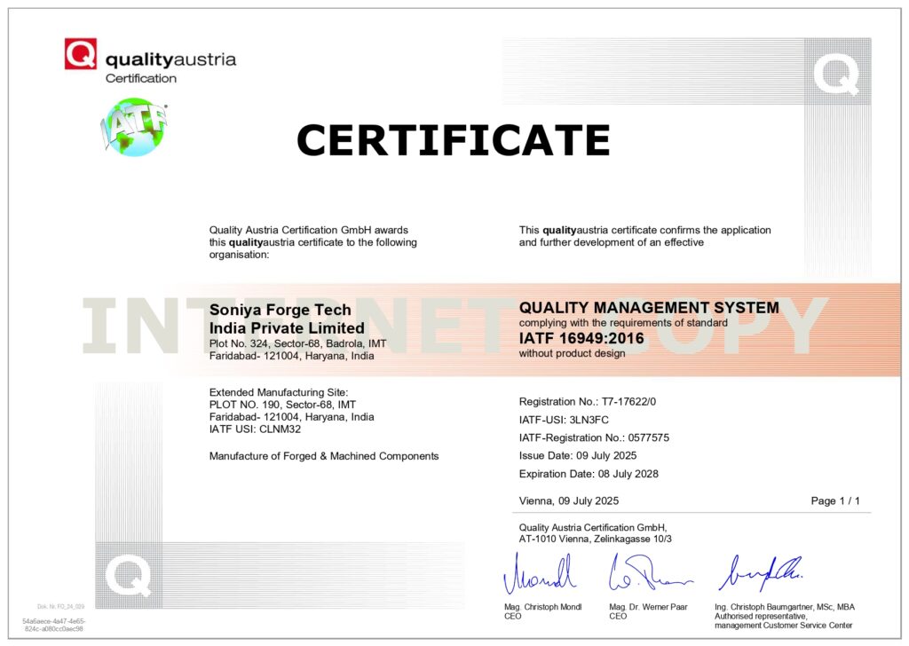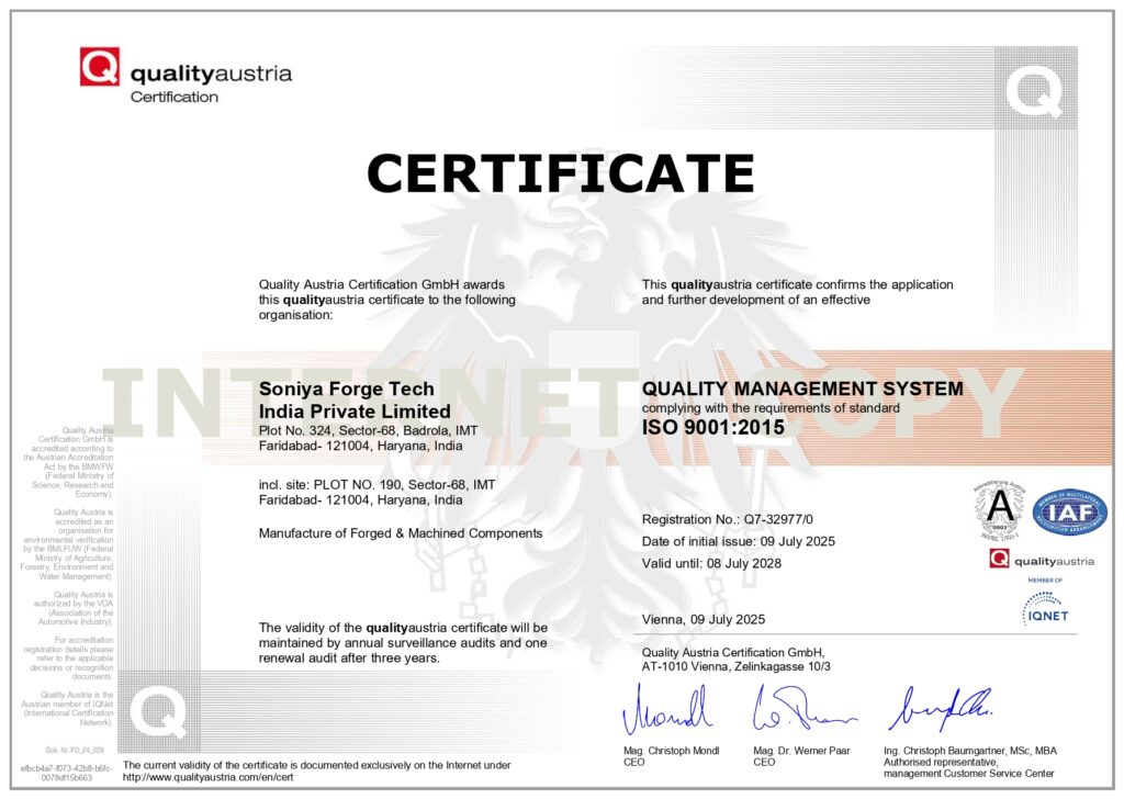 Soniya Forge Tech India unwavering commitment to quality control and operational excellence is a driving force behind everything we do. And while many companies speak to a commitment to quality, we’re proud of how our actions reflect our fulfilment of this promise to our customers.